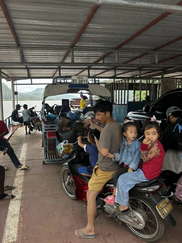 לכאורה Nong Khiaw מרוחקת מלואנג פרבנג כ- 140 ק"מ. כמעט כמו המרחק בין הערבה לאילת, שאנחנו גומעים בשעה וחצי… רק שללאוס יש קצב משלה. לפני ההגעה ללאוס, בשלב התיכנון, היו לנו תחילה מחשבות על שכירת רכב ונהיגה עצמאית. איזה מזל היה שזה לא קרה. הבנו זאת מיד כאשר התחלנו בנסיעה והכביש למעשה כמו נעלם בהרבה מאוד מקומות. מצאנו עצמנו נוסעים, בנסיעה איטית בדרכים חרושות עמוק. מתמודדים עם תנועת משאיות כבדות… כיף.