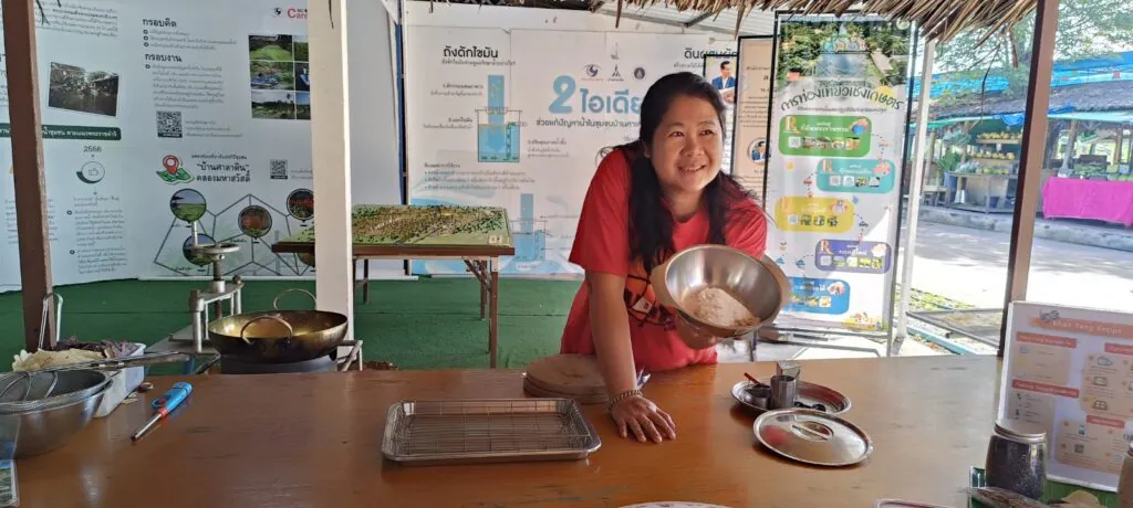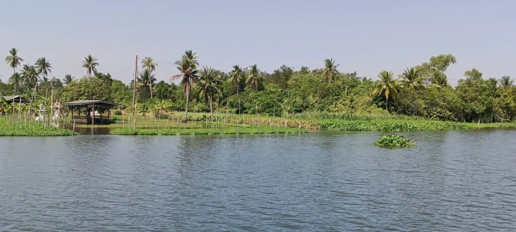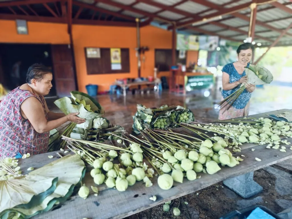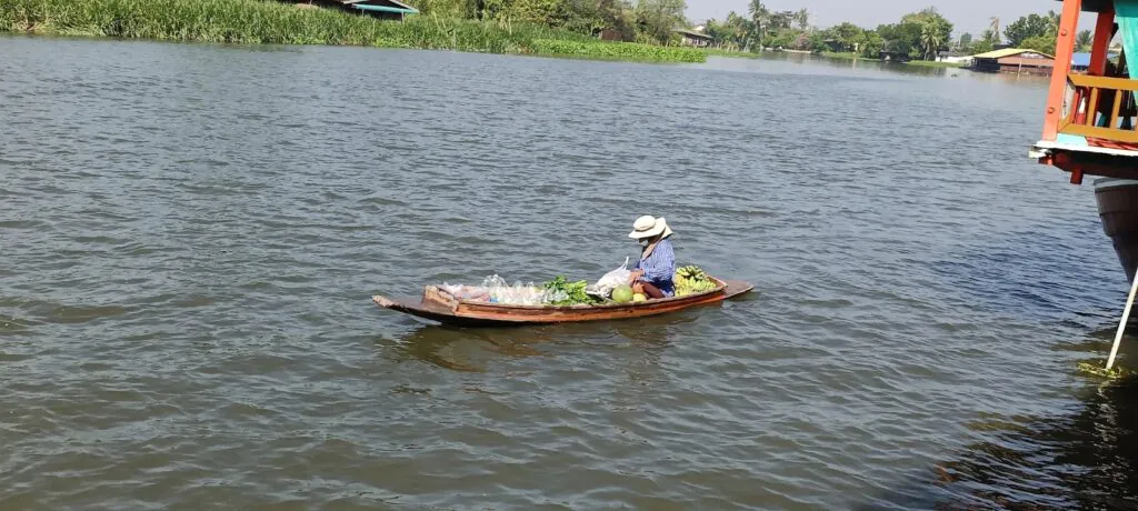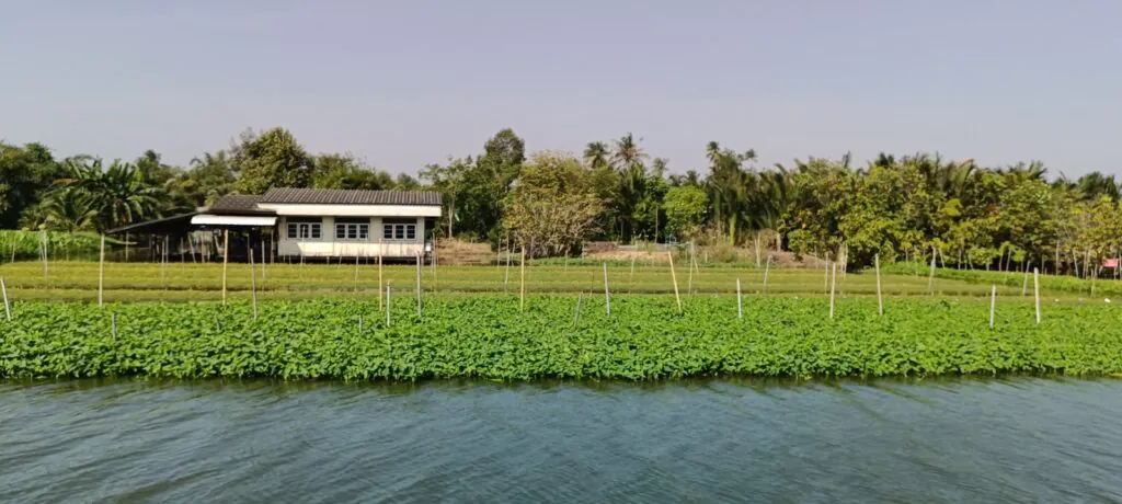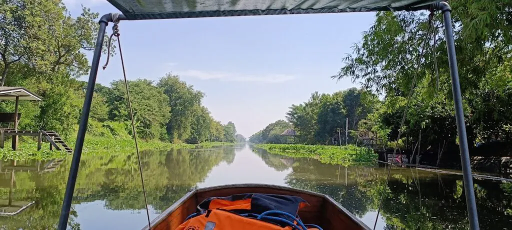 במחיר של כ200 באט לנהג מונית. אשר אסף אותנו מהמלון ולקח אותנו לכפר Baan Saladin Creative Industry Village. שם נפגשנו עם חבורת זקנות נמרצות ויצאנו להפלגה בין פרוייקטים חקלאים המנוהלים על ידי נשות הקהילה. מחיר סיור והפלגה 350 באט לסירה ועוד 100 באט לאדם. (לא עמדנו על המקח).