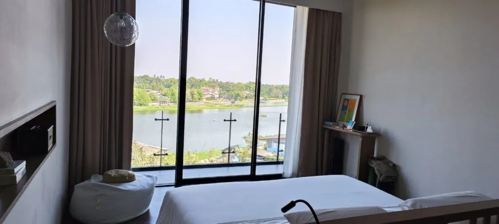 חדר יפה ושלו חיכה לנו. עיצוב צעיר ורענן. מיטה נוחה. מרפסת מול נהר. פוף מדליק שניתן להשתרע עליו וכל מיני עלים ופרחים לחליטה. מזרון יוגה ושמן ארומטי להעשרת החדר בניחוחות. אהבתי.