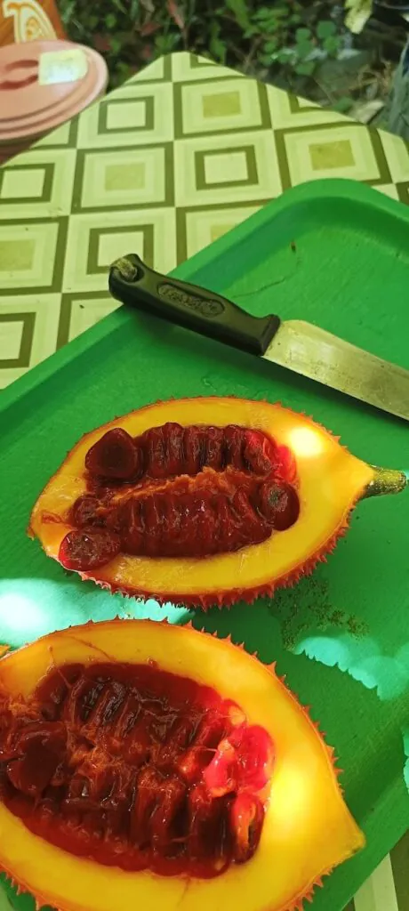 ביקור במטע של פרי כתום ומשונה שלא הכרנו – Gac או Fuk Kao. הפרי המשונה הזה מיועד לתעשיית הקוסמטיקה בעיקר. והמיץ הטעים ועתיר הסגולות שלו המופק מהציפה האדומה טעים.