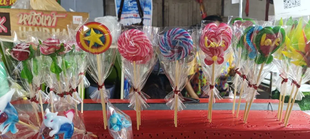 שוק סוף- שבוע נחמד מאוד, גדוש בדוכנים צבעוניים ומפתים, מצאנו לא הרחק מהמלון. במרחק של 300 באט מונית. בתוך מקדש חבוי שוק Don Wai Floating market: