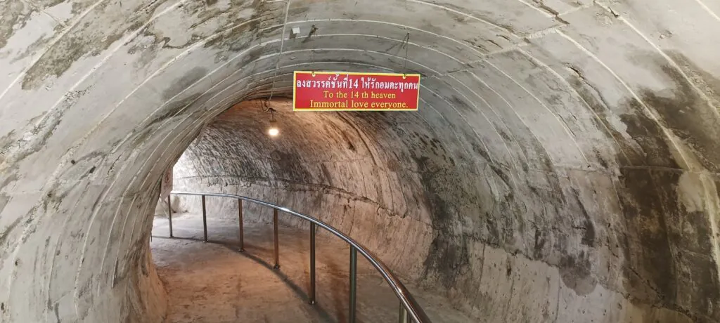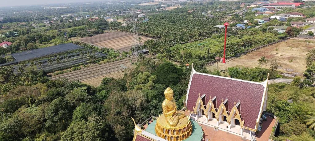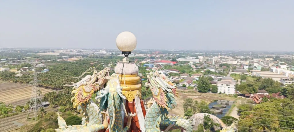בפעם ההקודמת בה בקרנו במקדש, מזג האוויר היה חם מאוד והחלטנו לא לטפס במעלה הדרקון. מה שלא ידענו אז היא העובדה שבעצם יש מעלית לקומות העליונות. (עלות 80 באט לאדם). אז הפעם, כמובן שעלינו במעלית ובחרנו לרדת ברגל. הנוף יפה ופרוש למרגלות המקדש.