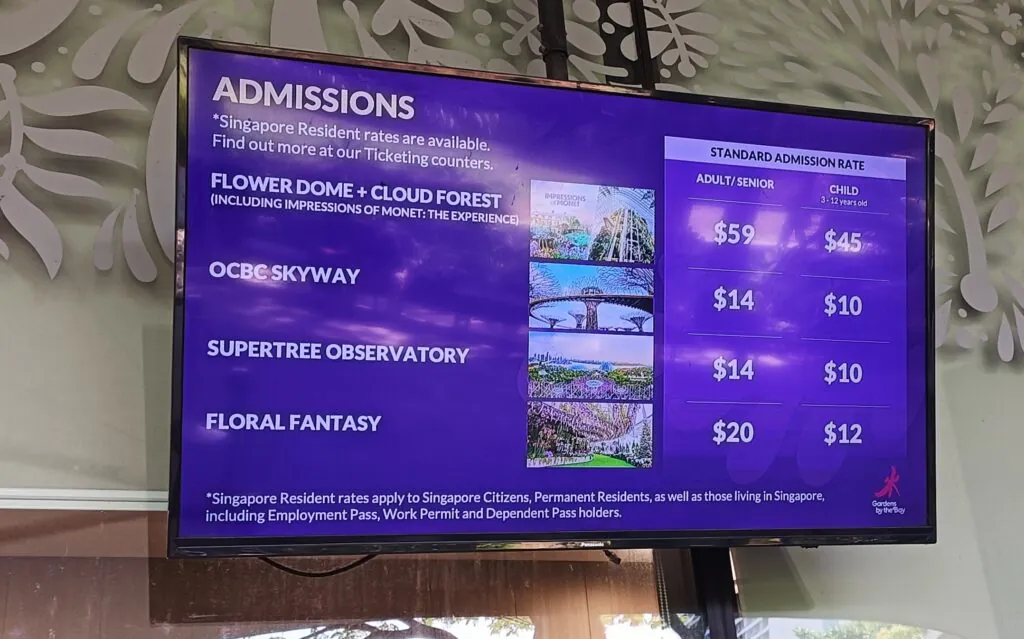 כאשר מחליטים לרכוש כרטיס, צריך לדעת להיכן תרצו להגיע. לכל אזור תעריף משלו. המחיר גבוה יחסית. מחיר זה, מומלץ להוסיף גם שאטל ב-3 דולר לאדם, עד לאזור החממות הגדולות. חייבת לציין, כי בלילה, בכל המהומה והבלגן, לא הצלחנו למצוא את השאטל בחזרה. אבל גם ההלוך בלבד היה שווה את המחיר, בחום הכבד.