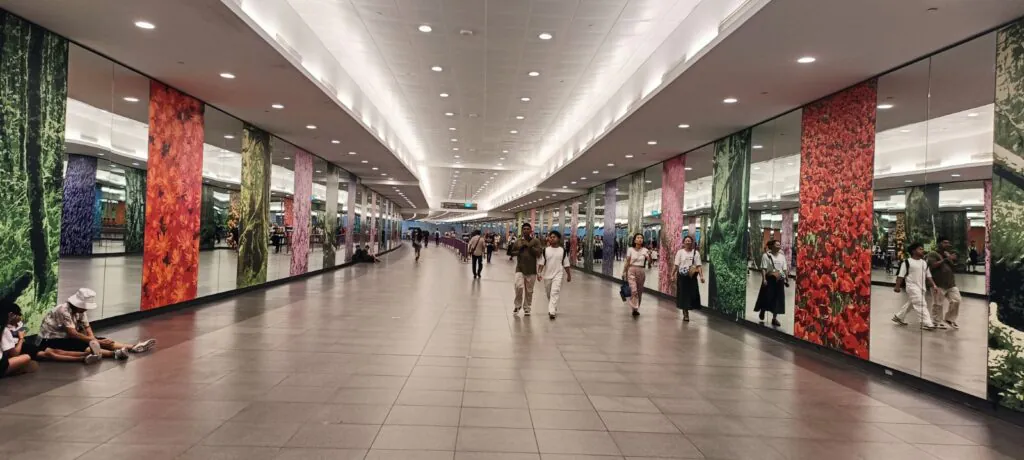 חייבים לשים לב למספרי הכניסות והיציאות, אחרת הולכים לאיבוד בתוך המבוך התחתי. (מנסיון). כרטיסים ניתן לרכוש אך ורק באמצעות כרטיס אשראי או גוגל – אפל פי. אותו מצמידים לסורק בכניסה וביציאה. אין אפשרות לרכוש כרטיסי נייר בכסף מקומי.