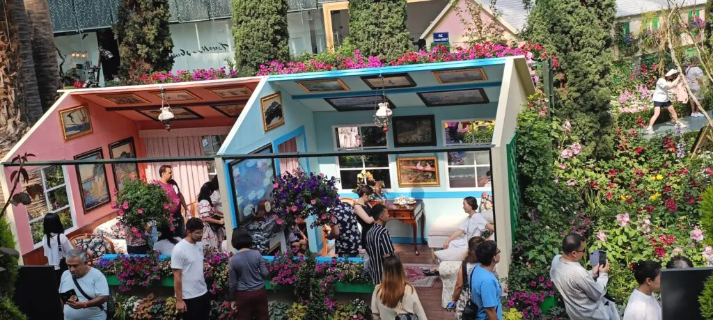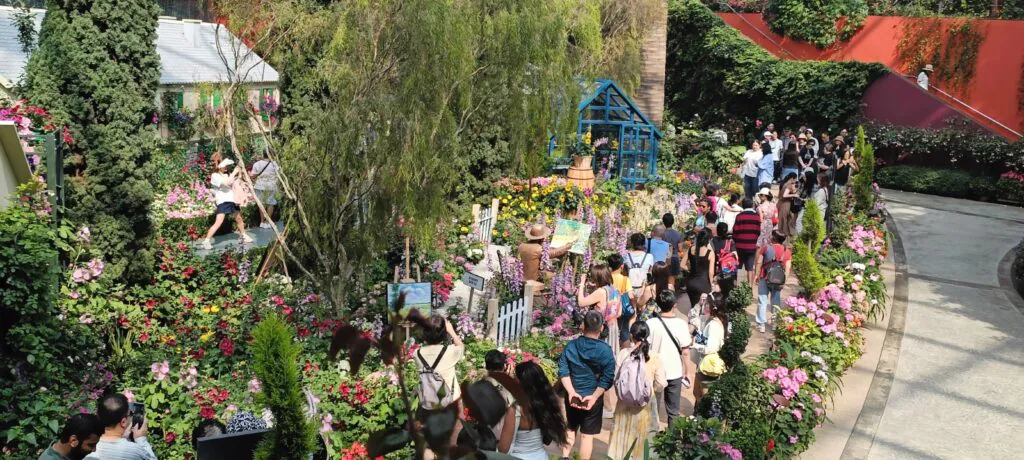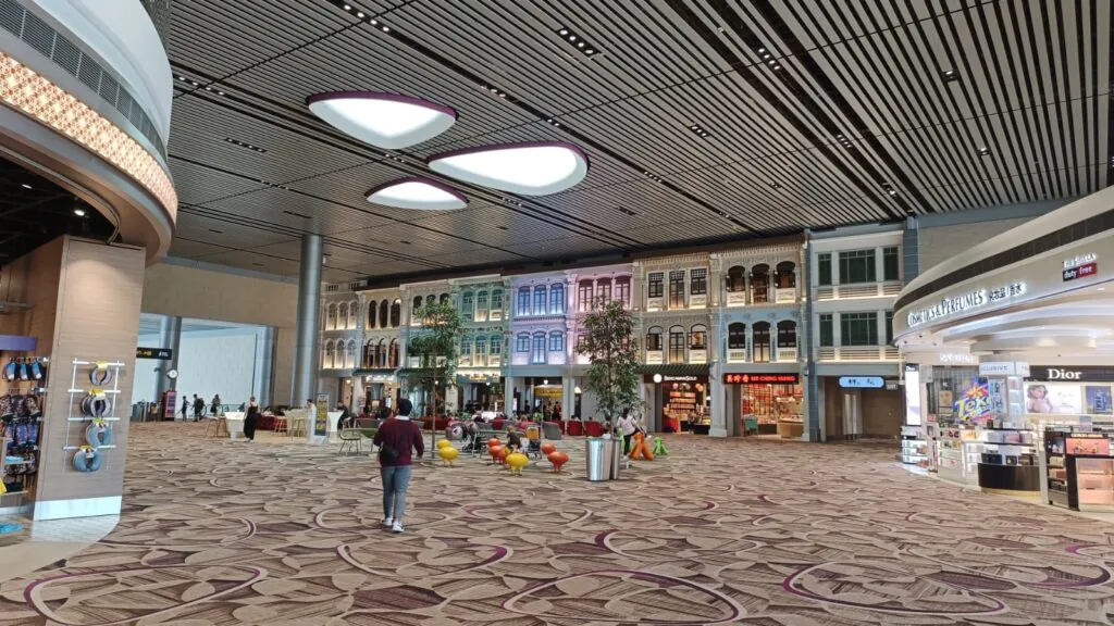 רפליקה של הבתים הסיניים הצבעוניים בתוך טרמינל 3