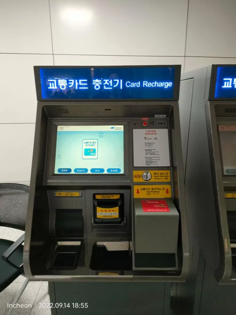 את כרטיס הרכבות המפורסם: T-money רכשנו בתחנת הרכבת בשדה התעופה. מחיר כרטיס שאינו מעוצב – 4000 וון. ניתן לקבל עליו החזר, אם תזכרו לעשות זאת ותמצאו את המכשיר המתאים.
