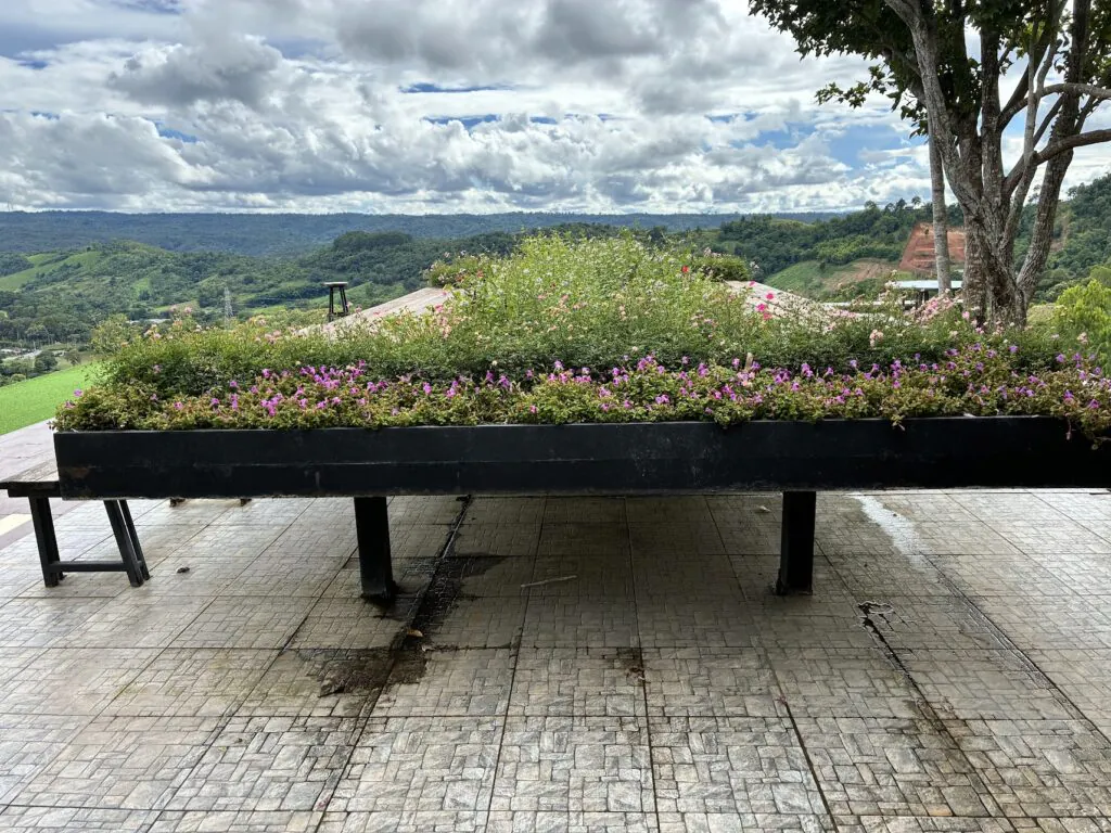 הידריגניות לא היו בעונה בה היינו. אלא פרחי בשמת, שהבהירו לי כי מזג האוויר השורר באזור, נוח וקריר יחסית לתאילנד. כניסה בתשלום: 60 באט לאדם. (20 באט יקוזזו ממחיר הקפה). יש במקום מגלשת ענק לצעירים, בתשלום נוסף. הקפה היה טעים. תה הורדים היה מהמם וגם העוגה היתה טעימה.
