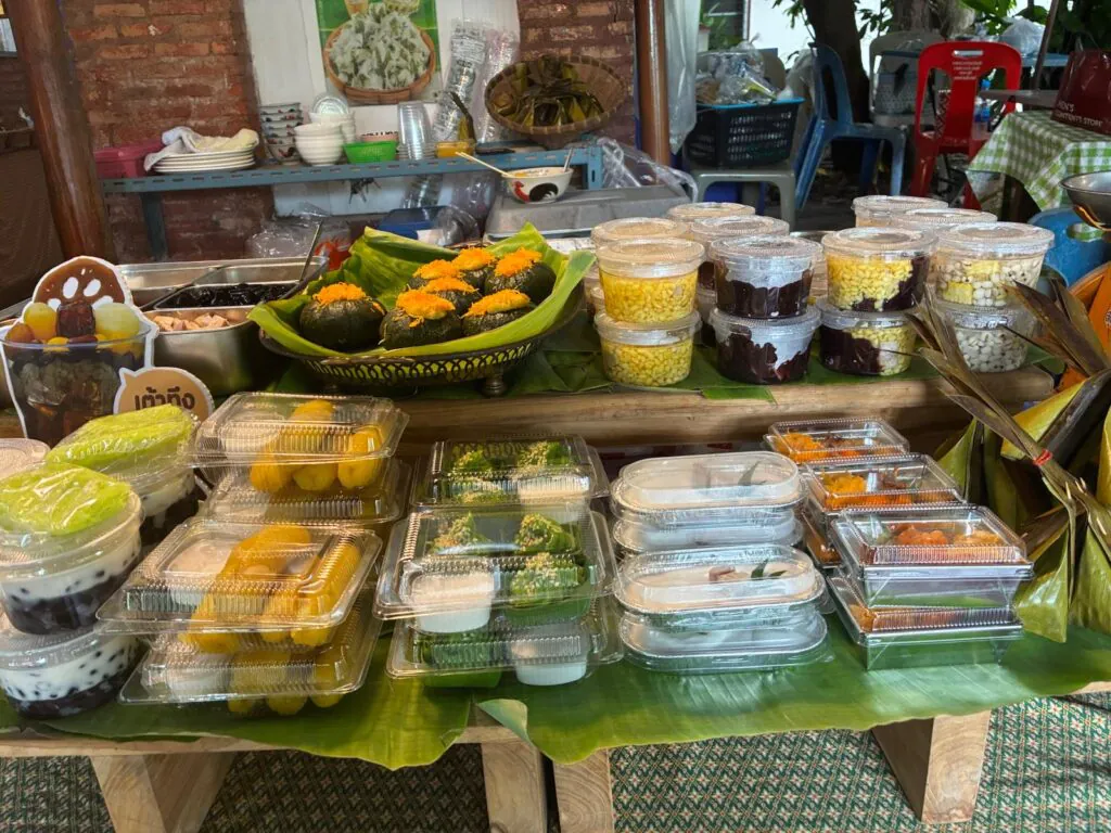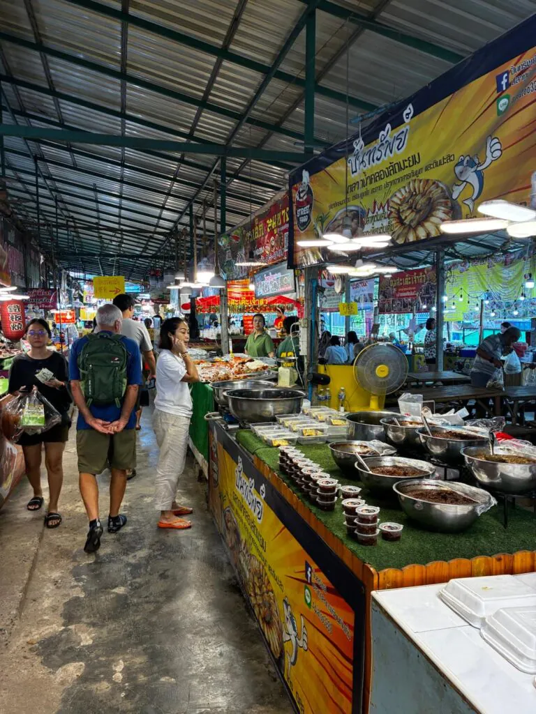 טוב זו שאלה מיותרת אם אתם אוכלי כל. יש כאן מסעדות קטנות, דוכני אוכל מכל הסוגים. דברי מתיקה, פרי מרהיב ואפילו תמרים על סנסנים למתגעגעים לתמרי המהג'ול המופלאים של הערבה. לנמנעים מאכילת החי, כמותי, ראיתי דוכן ובו מכינים קאו-סוי צמחוני. יש דוכן למיני מטוגנים צמחונים, כמו לביבות תירס וצנון, אגרולס וטופו. אז נא לא להתייאש בקלות. לא תצאו מכאן רעבים. כל מעדני תאילנד, מסודרים בצורה מזמינה ויפה.